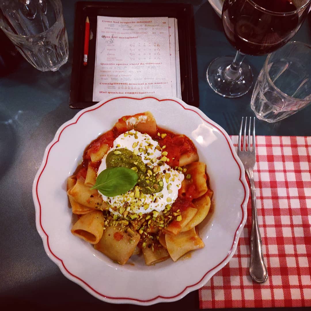 Unitamente a queste possibilità vengono proposti dei piatti “classici” come i paccheri tricolore (nella foto), conditi con salsa di pomodoro, crema di burrata e granella di pistacchi.