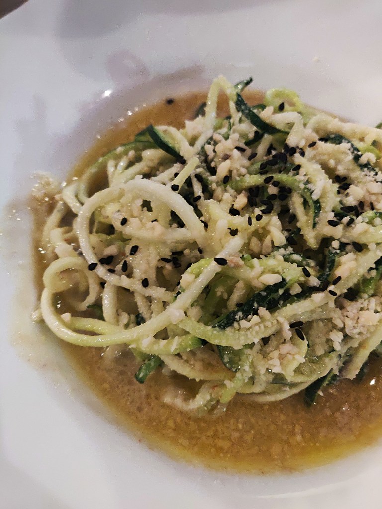 Luca invece ha preso un Derby Club (spaghetti di zucchine con crema di gorgonzola, pomodorini freschi e mandorle) che con agile mossa sono riuscita ad assaggiare, prima che li facesse sparire a tempo di record. Anche questi mi sono piaciuti ma ammetto che, dato il mio sconfinato amore per la pasta “vera”, non avevo mai assaggiato gli spaghetti vegetali, quindi è stata un’esperienza del tutto nuova.