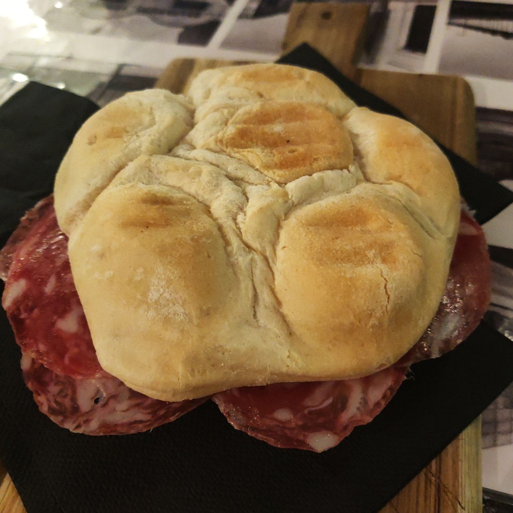 Lui ha continuato la sua cena con un “Porta Venezia”, una michetta (rigorosamente) con salame e burro lavorato al prezzemolo e limone, che non potevo esimermi dall’assaggiare (non sia mai.): persino a me, che non sono un’amante del pane e salame, è piaciuto moltissimo.