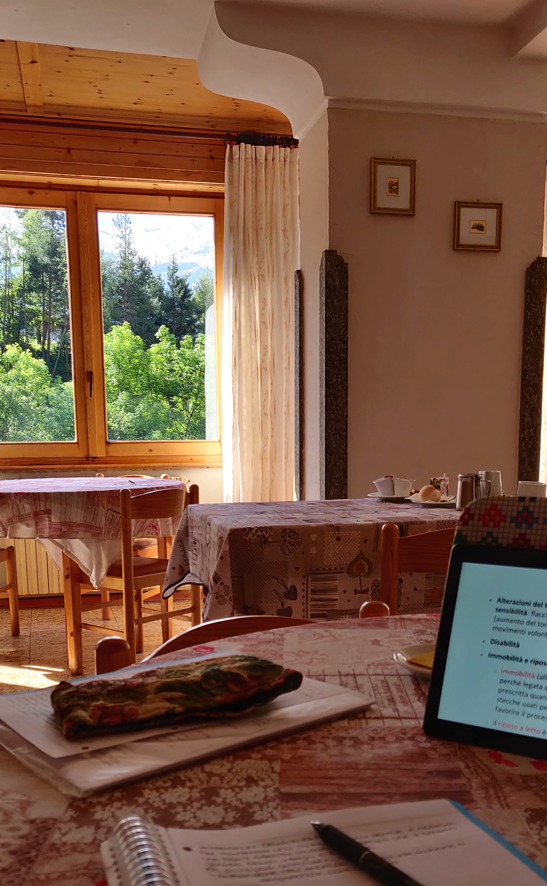 La sala colazioni e i miei appunti del corso OSS