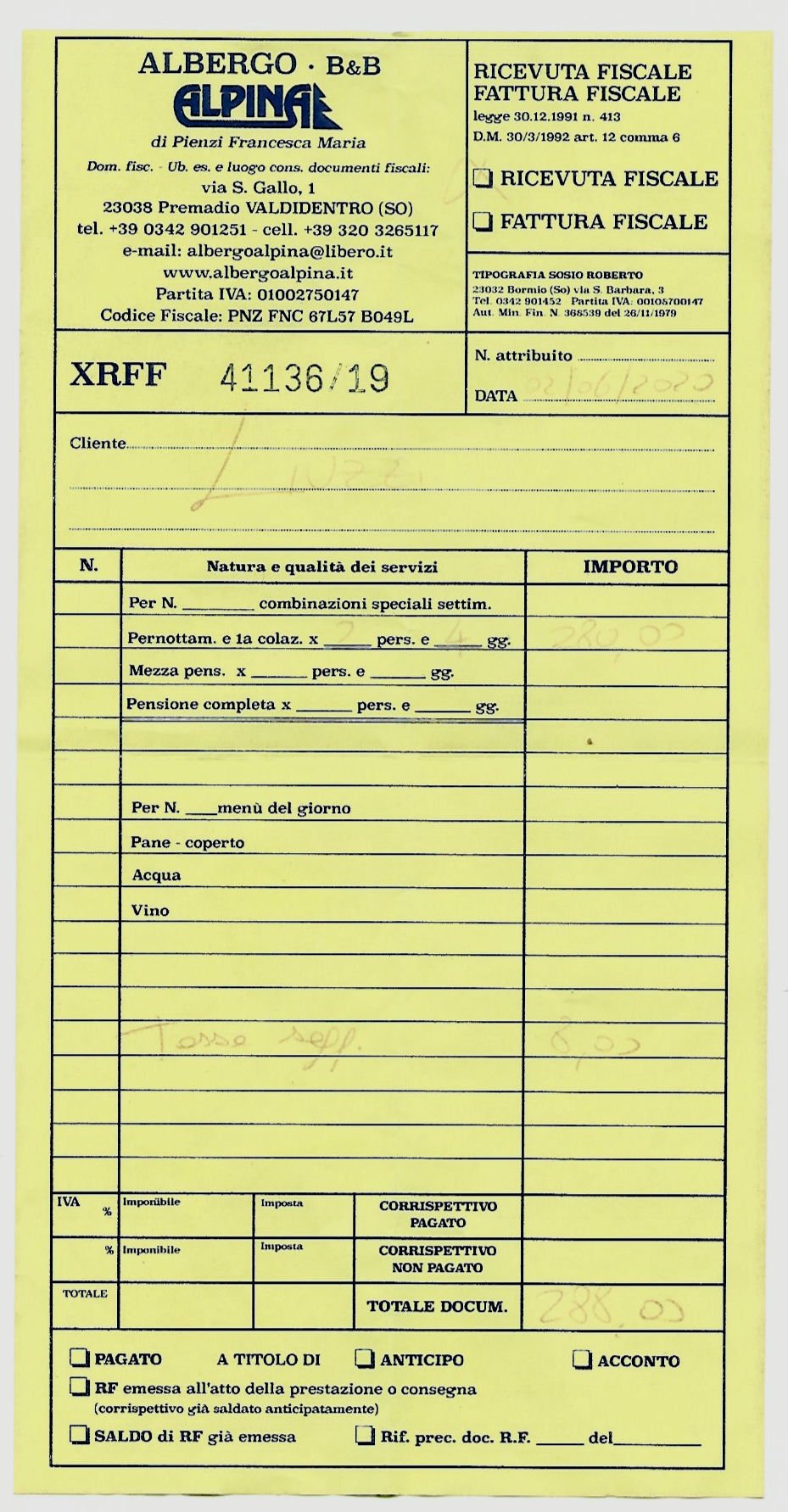 Tassa di soggiorno 1€/giorno