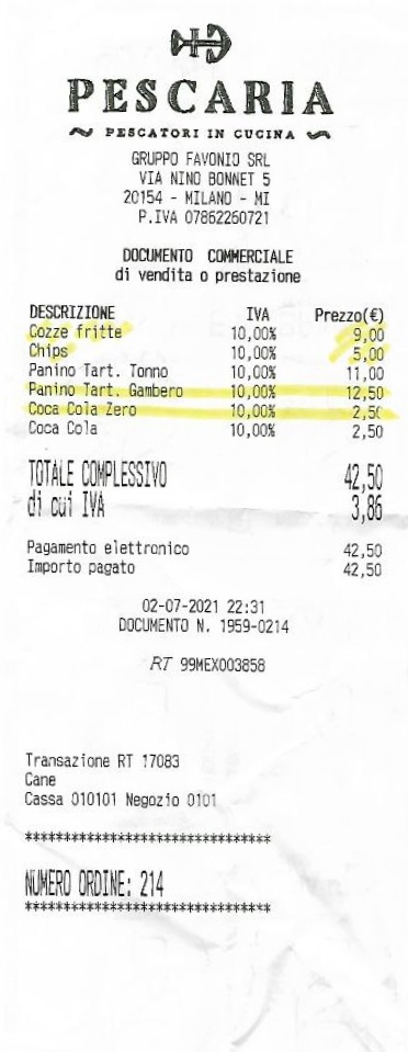Come suggerisce il nome il menù è tutto a base di pesce e si compone, fondamentalmente, di: panini, insalate, tartare, piatti sia crudi che cotti e friggitoria varia.