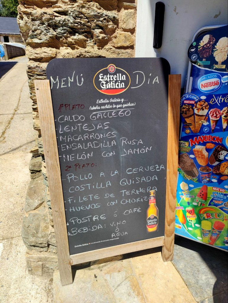– pranzo/cena da 12 a 16€ a pasto: a meno che non decidiate di andare sempre al supermercato e mangiare cose pronte (ma vi assicuro che non risparmiate gran ché, anzi), la favoletta che tutti gli albergue hanno la cucina non è vera quindi dovete per forza rivolgervi a bar e ristoranti. Hanno tutti un menù del giorno composto da un antipasto/primo, un secondo con contorno, bevanda, caffè e nella maggior parte dei casi un dolce o un frutto. Ne vale decisamente la pena almeno una volta al giorno perché avrete parecchia fame.